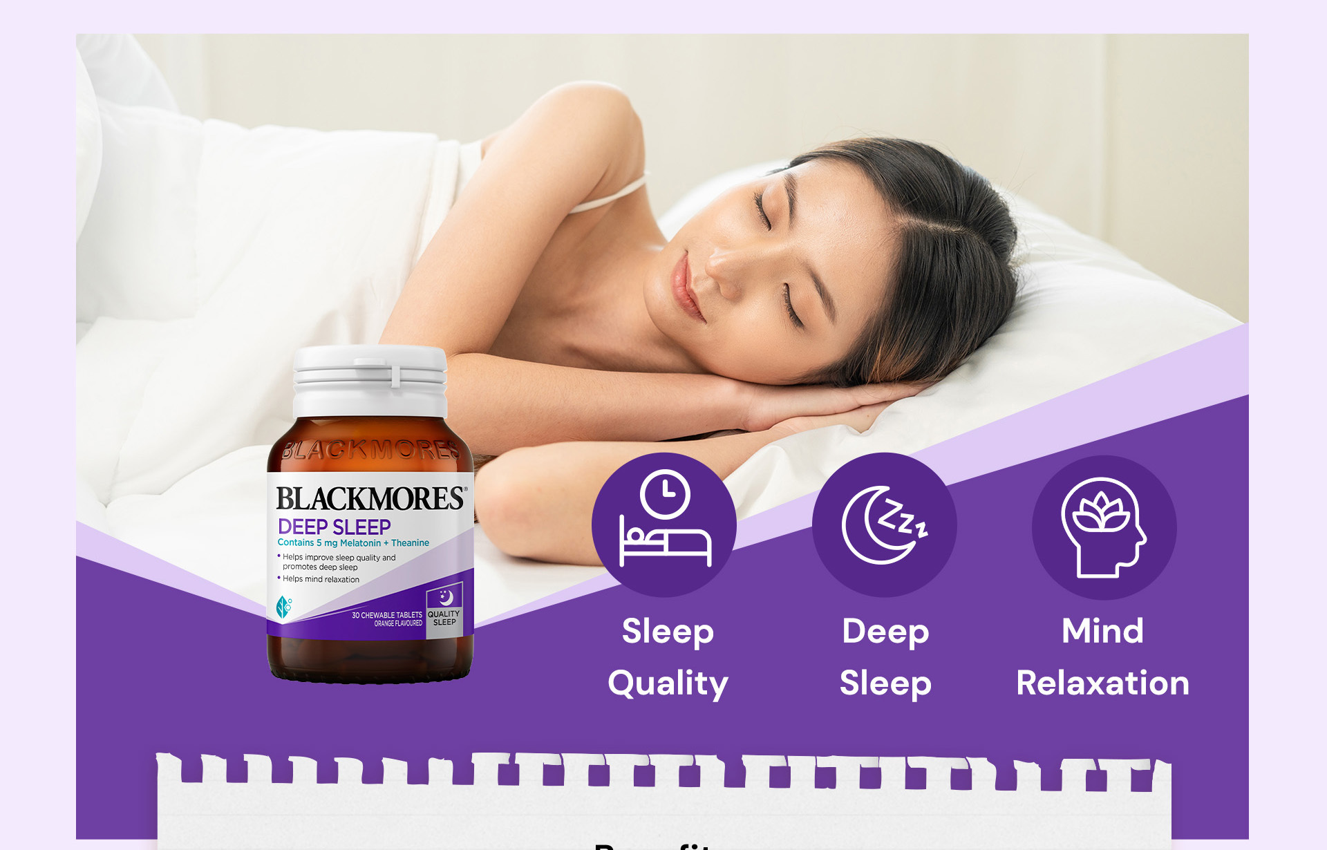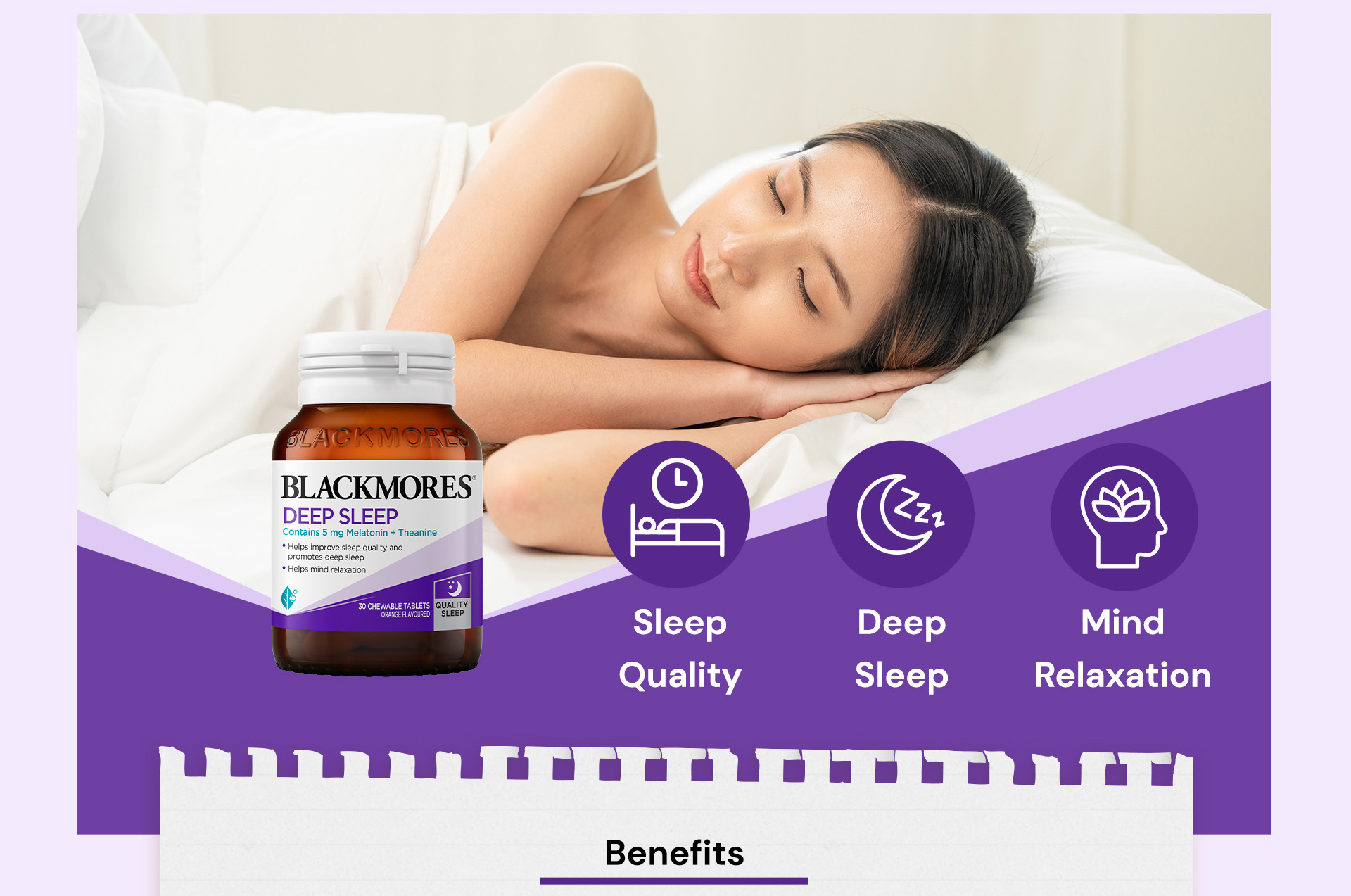 Blackmores Deep Sleep is dual-action, containing 5 mg of melatonin and 100 mg of L-theanine, to help increase sleep quality and enhance deep sleep. *Melatonin is intended for occasional use only. It is not intended for long-term consumption.