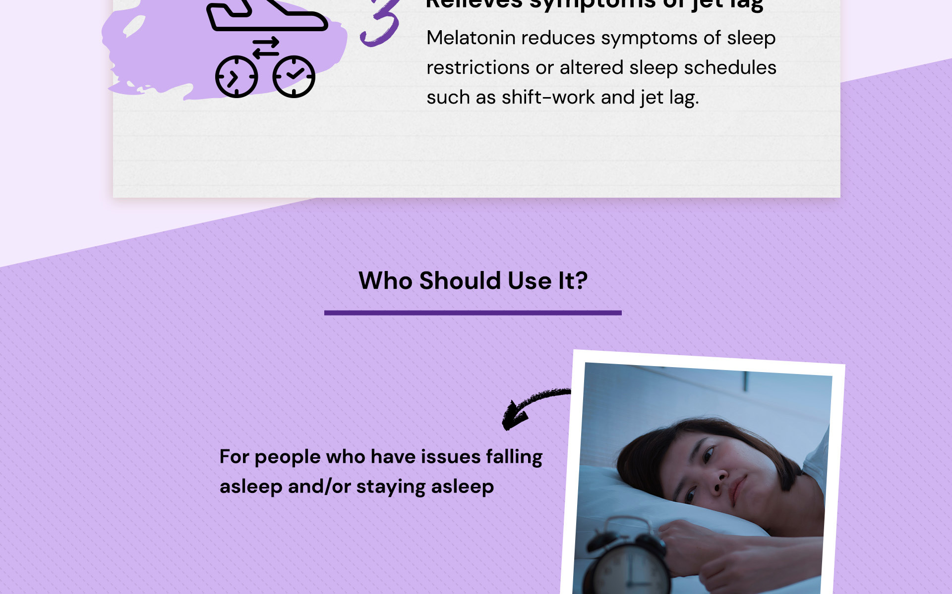 Blackmores Deep Sleep helps to increase the total sleep time (aspect of sleep quality) in people suffering from sleep restrictions or altered sleep schedules such as shift-work and jet lag.