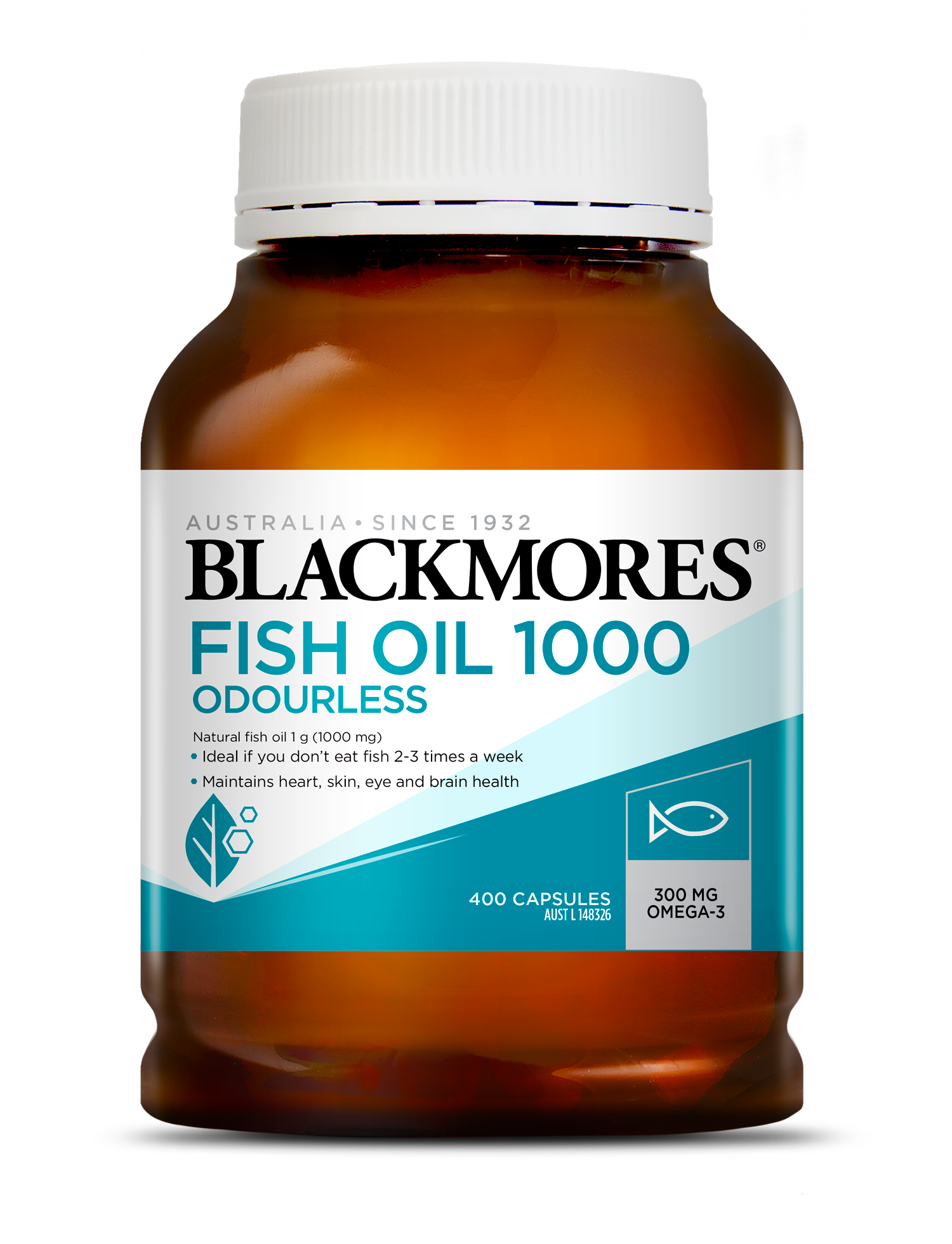 Omega-3s are essential for health and must be obtained through diet. Blackmores Fish Oil 1000 Odourless is a supplement if you do not regularly eat the recommended 2-3 serves of fish per week. It plays an important role to maintain heart, skin, eye, brain health.