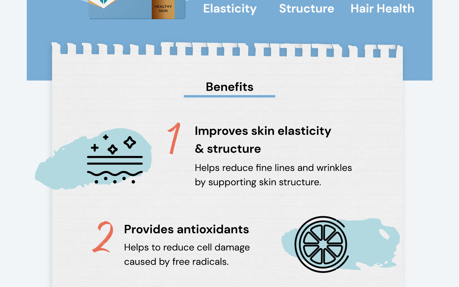 Hydrolysed small molecular collagen (average size 2 kDa) for better absorption -