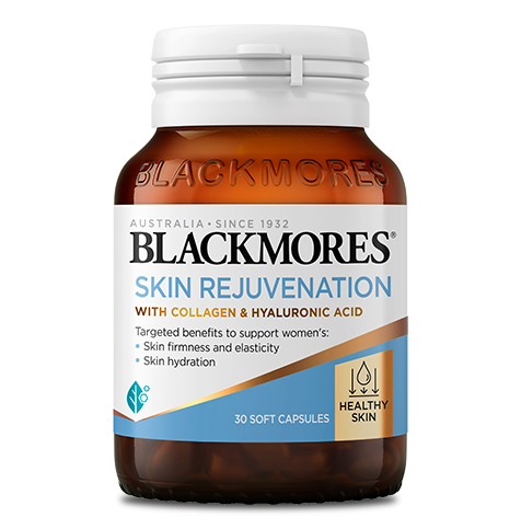 Blackmores Skin Rejuvenation provides hydrated skin from 28 days with hyaluronic acid, hydrolysed collagen and antioxidants that support skin health.